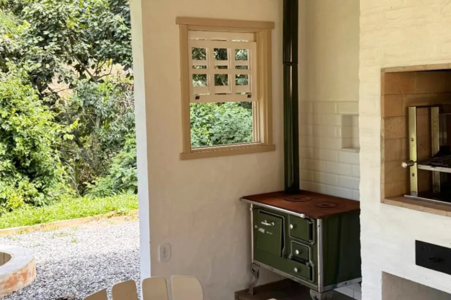 A casinha fica dentro de um sítio encantador onde também está uma pousada, mas em uma área mais reservada, garantindo total privacidade e tranquilidade. Ao mesmo tempo, quem se hospeda na casinha pode aproveitar toda a estrutura do local, como o jardim, hortas, uma charmosa queijaria e o bistrô da pousada, perfeito para curtir o clima do campo com calma.